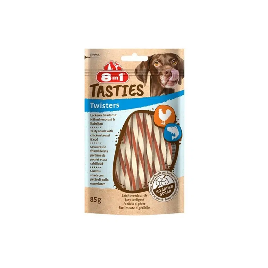 | Etiketler | 8in1 Tasties Twisters Tavuklu Balıklı Burgu Köpek Ödülü 85 gr |